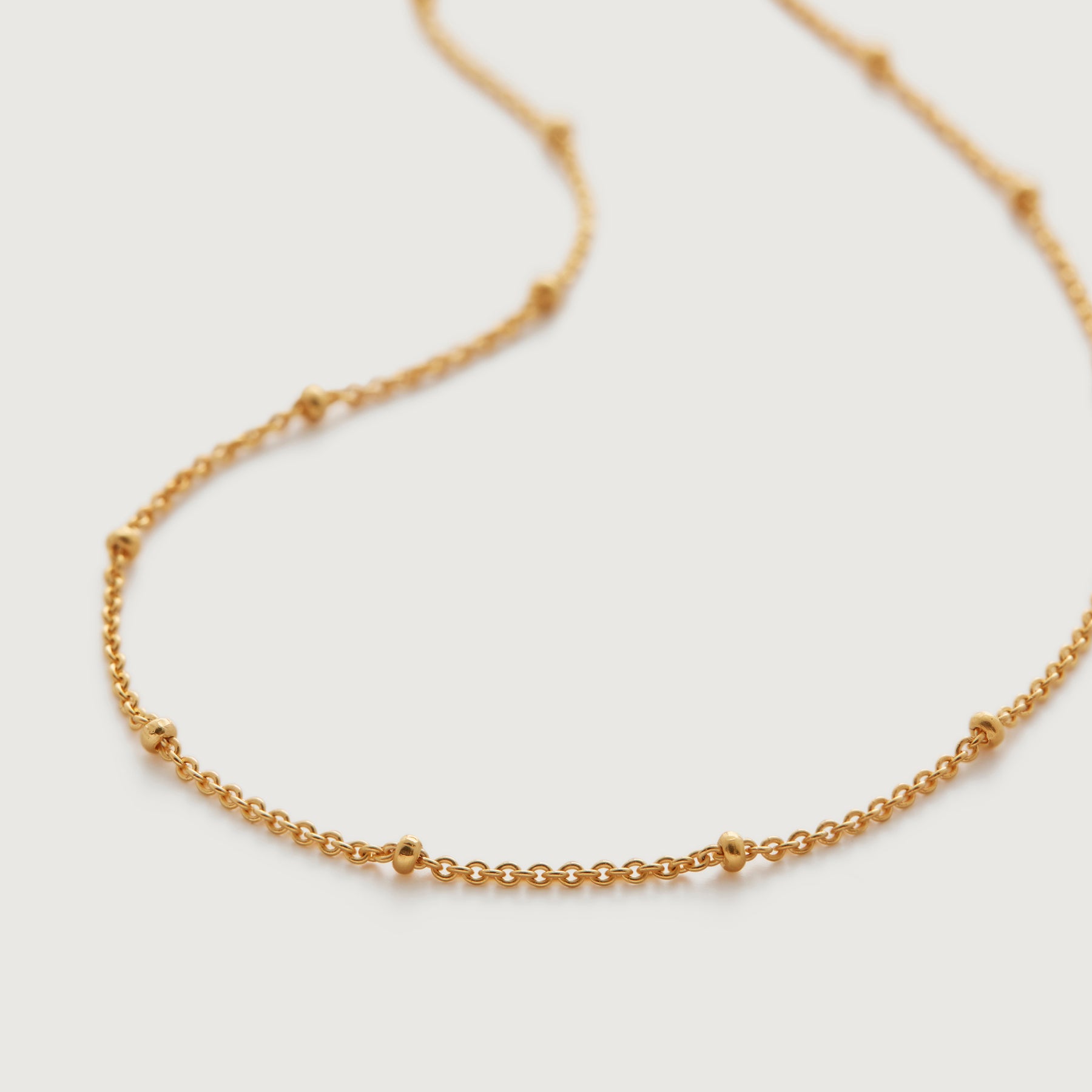The Candice Necklace features a delicate satellite chain design that stacks beautifully with other pieces. Waterproof construction keeps it looking pristine through daily wear. A customer favorite that combines versatility with durability.